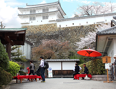 姫路城迎賓館付近で入城客のおもてなしとしてお茶席を設けています。